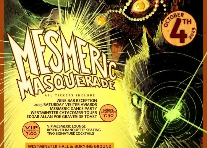 The Black Cat Ball is the Official Party of the International Edgar Allan Poe Festival & Awards. This year’s Black Cat Ball is a Mesmeric Masquerade, a triple invocation of Edgar Allan Poe’s immortal legend: 180 years